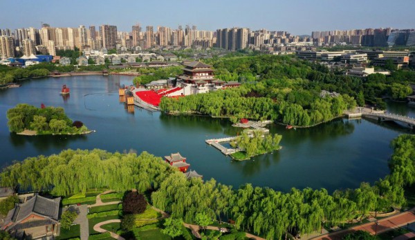 2023年4月25日的西安大唐芙蓉园(无人机照片)。新华社记者 刘潇 摄