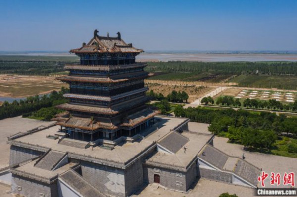 航拍山西永济鹳雀楼。中新社记者 武俊杰 摄