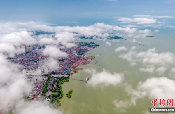 岳阳楼前洞庭湖水域云蒸霞蔚,气象万千。来源:视觉中国