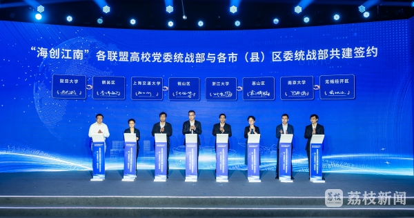 现场,“海创江南”各联盟高校党委统战部与无锡市各县(市)区委统战部签约共建,分别为复旦大学与新吴区、上海交通大学与锡山区、浙江大学与惠山区、南京大学与江阴市及无锡经开区、东南大学与宜兴市、中国药科大学与滨湖区、南京师范大学与梁溪区牵手。“海创锡引力”产学研协同孵化基地同步揭牌。