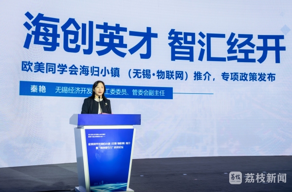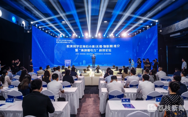 论坛现场,无锡经开区就全国首批、全省唯一的欧美同学会海归小镇(无锡·物联网)进行推介。