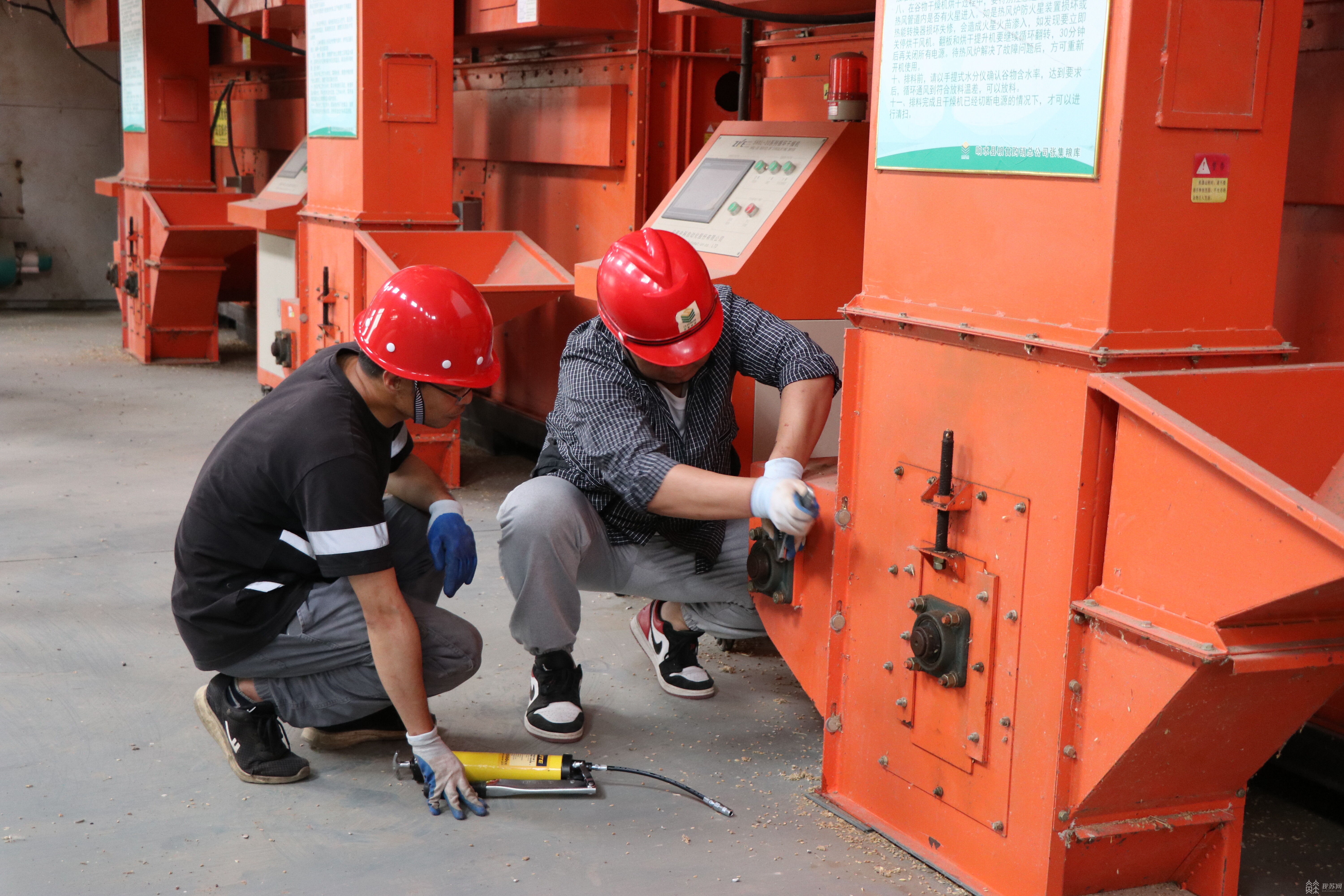 5月31日,在该县小尖镇境内的粮食收购点——响水县金禾储备粮有限公司,记者看到,工作人员正忙着对输送机、卸粮机等设备进行检修,同时紧锣密鼓地对县级储备粮进行轮换出库作业,腾出仓容为即将到来的夏粮收购入库做好准备。