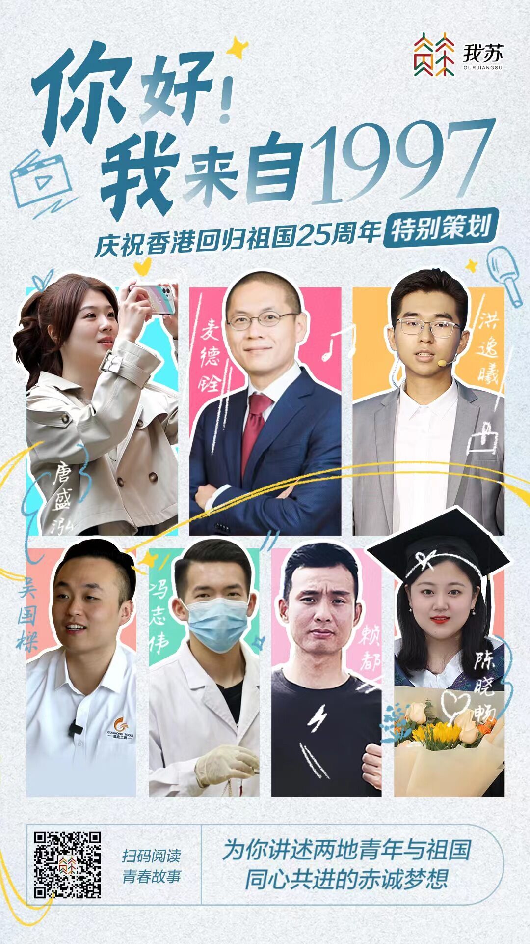 江苏省广播电视总台“你好!我来自1997”融媒体新闻报道,通过讲述25位青年在“一国两制”实践中奋斗逐梦的故事,鲜活展现香港与祖国内地之间水乳交融的情感连接,折射香港与祖国协同发展的勃勃生机和美好前景。系列策划通过微纪录片、专访报道、创意海报、全媒互动等多形式、多样态产品,在互联网端形成爆款流量,提升两地青年特别是香港青年的文化认同感。