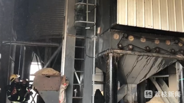 消防救援人员到达现场后看到,烘干机器内3层-4层位置有烟雾冒出。由于机器是全封闭的,稻谷经两个大型管道输入,而管道入口在最顶部,高达20余米,消防员无法看到内部情况。经过现场研判,消防救援人员分两组行动,一组负责破拆;另一组通过罐体向内部射水并同步进行排烟,同时架设高喷消防车在外部对机器罐体进行降温,并从外部入口对机器内部进行灌溉,其余消防员立即使用高压水枪对烘干机外部进行冷却,经过近1个小时战斗,机器仓内的阴火彻底熄灭,并将罐内粮食全部安全转移,成功挽救近50吨稻谷。