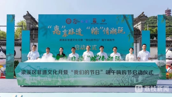 6月10日,“‘惠’享非遗 ‘粽’情潮玩”梁溪区非遗文化月暨“我们的节日”端午嗨购节启动仪式在无锡惠山古镇西神广场启幕。