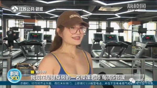 在淮安的一家健身房,扎着高马尾,肌肉线条明显的鲍小玲,正带着几名学员跳有氧操。