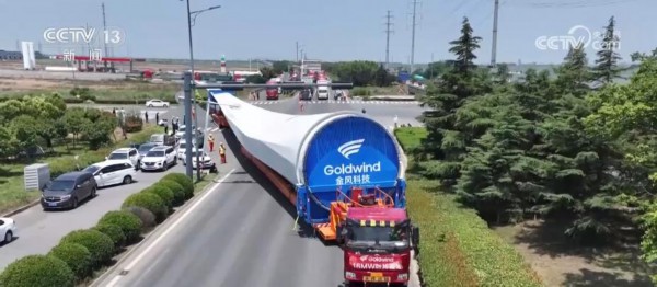 总台记者 毛俊:为了保证叶片顺利运输,各方做了大量的工作。比如,运输线路要求路宽8米,限高在6.5米以上,沿途的一些障碍物也会提前被清除,司机都拥有多年的风电叶片运输经验。而且在货车前后都有专门的押运车辆。228国道社会车辆较多,关键路段还有交警部门协调指挥交通。30公里的路程前前后后需要三到四个小时。14日下午,叶片就会运送到连云港港口码头;15日进行上船的吊装,海上航行5天左右;20日抵达福建平潭外海的海上风电场,进行后续的整机组装。