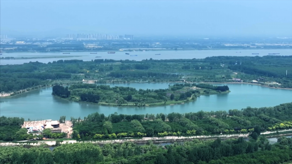 新济洲位于南京江宁区,几十年前,这里的原住民常年遭遇长江洪灾。南京市对岛上住户“生态移民”后,进行了多年生态修复、功能再造、景观提升,建成了面积26.81平方公里的新济洲国家湿地公园,这是我国第一家独具特色的洲滩型国家湿地公园,因鱼虫林鸟汇集、生物多样性丰富,被誉为“江中绿宝石”“生态大宝库”。