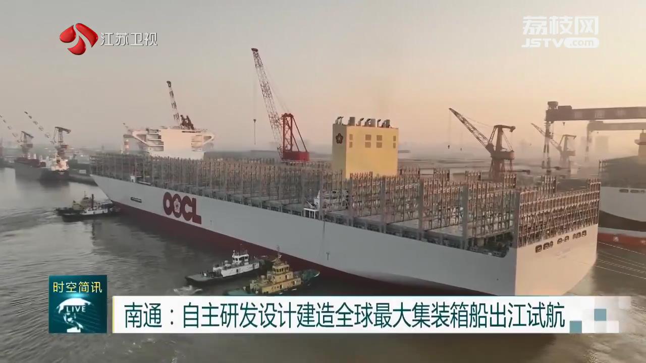 南通:自主研发设计建造全球最大集装箱船出江试航