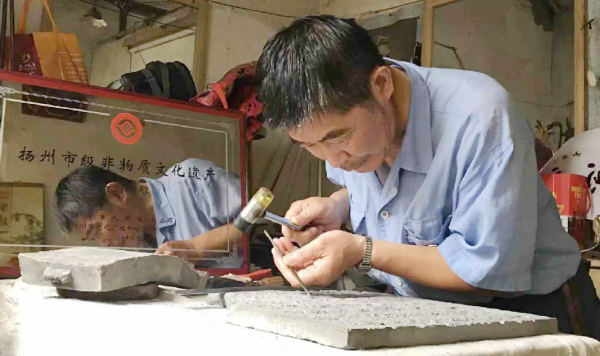 吉志钢用一块块砖雕展示扬州“好地方”的“好”。