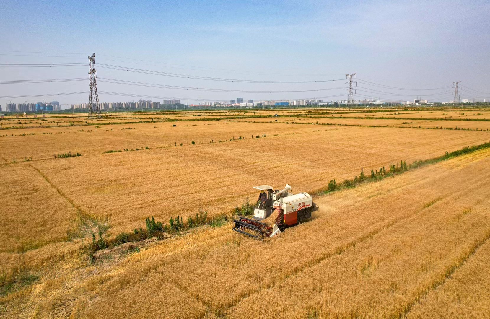 三夏时节,麦田流“金”。沃野之上,农机驰骋,丰收喜报频传。