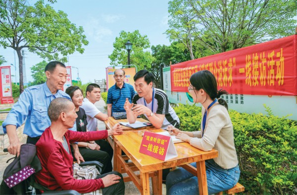 2023年5月24日,福建省莆田市城厢区纪委监委在东海镇大埔村开展“我听群众说诉求”一线接访活动。 求是图片 吴震/摄