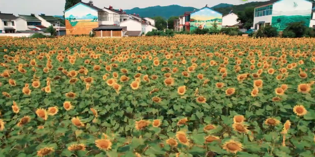在阳羡度假区(湖㳇镇)张阳村,十几亩的向日葵竞相绽放,朵朵金灿灿的花盘迎风摇曳,高低错落,金黄艳丽的向日葵花与绿色的田园相应成辉,把乡村装扮得格外美丽,吸引了众多市民赏花拍照。