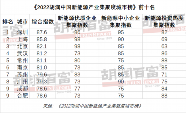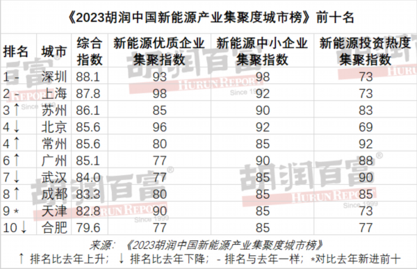 6月19日,胡润研究院发布《2023胡润中国新能源产业集聚度城市榜》,列出了新能源产业集聚度最高的中国城市50强,苏州排名第三,超过北京、广州。