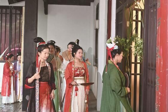 当天,在东坡公园著名标志性景点龙亭处,30位“古人”从古画《汉宫春晓图》中灵动自然地“走”出来,给人“出画入戏”的即视感。来自无锡的游客黄女士说:“东坡公园里这些‘原汁原味’的传统民俗活动,让我们对端午习俗和汉服文化有了更多更深的了解,中华文化源远流长,值得我们一代一代传承下去。” 胡平摄