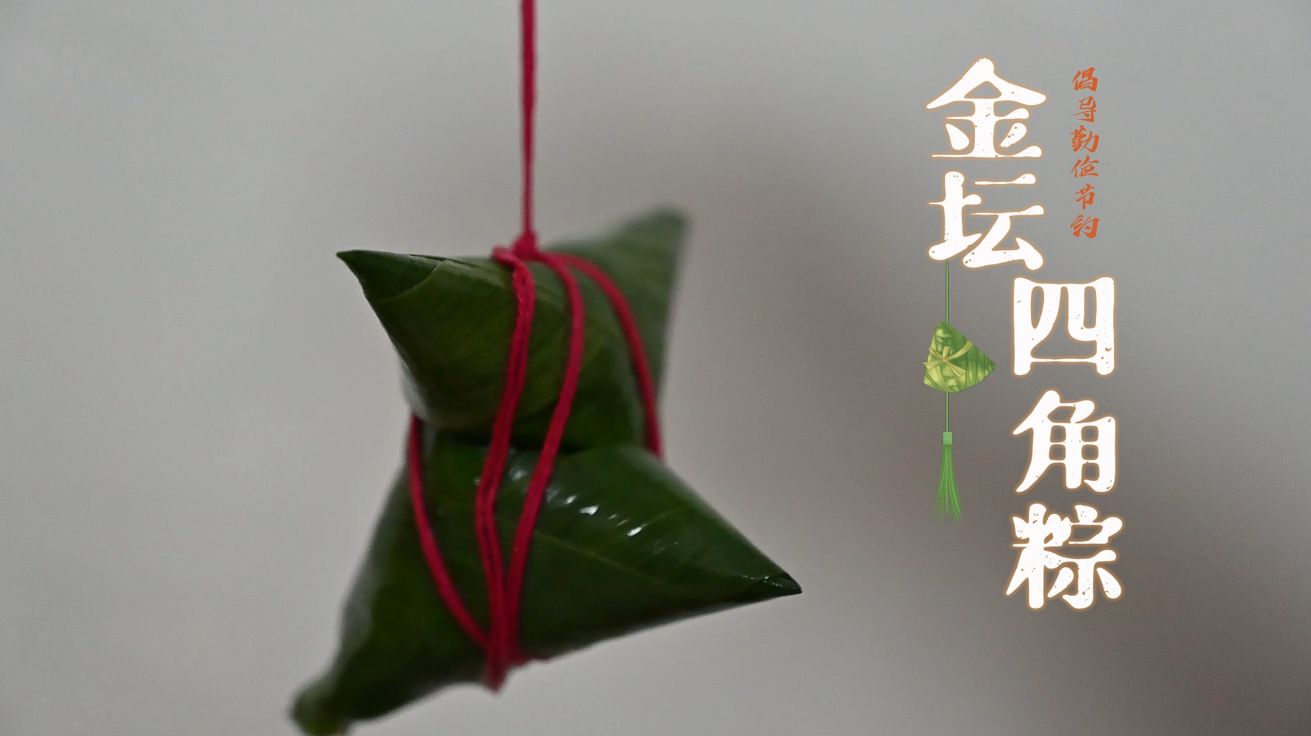 常州金坛四角粽有四个菱角,不像高脚粽方方正正,最早是为了避免浪费食材,把剩下的粽叶、糯米包成一个小的“菱米”。它比较小巧,看着有灵气,后来因为菱角听起来像“灵巧”的意思,现在也演变成一种祝福,包给小孩子寓意聪明灵巧。