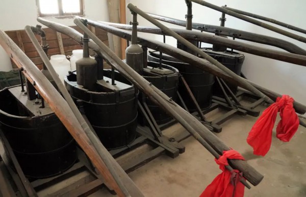 沿着村民们的指引,一座精致的院落映入记者眼帘,院门上书“马铺水龙局”。院内有两间平房,其中一间室内7驾水龙依次排开。其木桶、木杠的木质细密坚硬,泵体和喷嘴采用上好的铜材制造,尺寸因制造年代不同而各异。7驾水龙在其泵体上方都刻有制造年代,最早的一驾制造于清代道光年间。虽然历经170多年的沧桑,仍然完好无损。其他的水龙有光绪年间造的,也有新中国成立后造的。在院落内,还存有其他救火工具,如扒火用的钩子、加水的柳条桶等等。