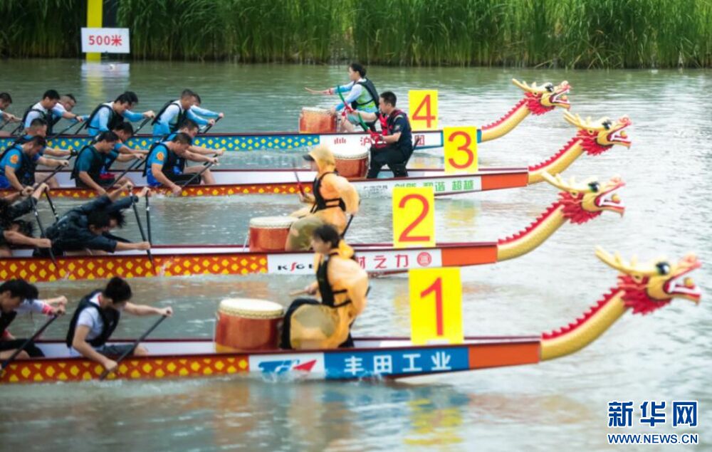 挥桨竞渡,百舸争先。图为2023长三角龙舟(昆山)邀请赛现场参赛队伍激烈角逐的场景。赛事吸引了中外24支代表队参赛。(摄影:昆开轩)