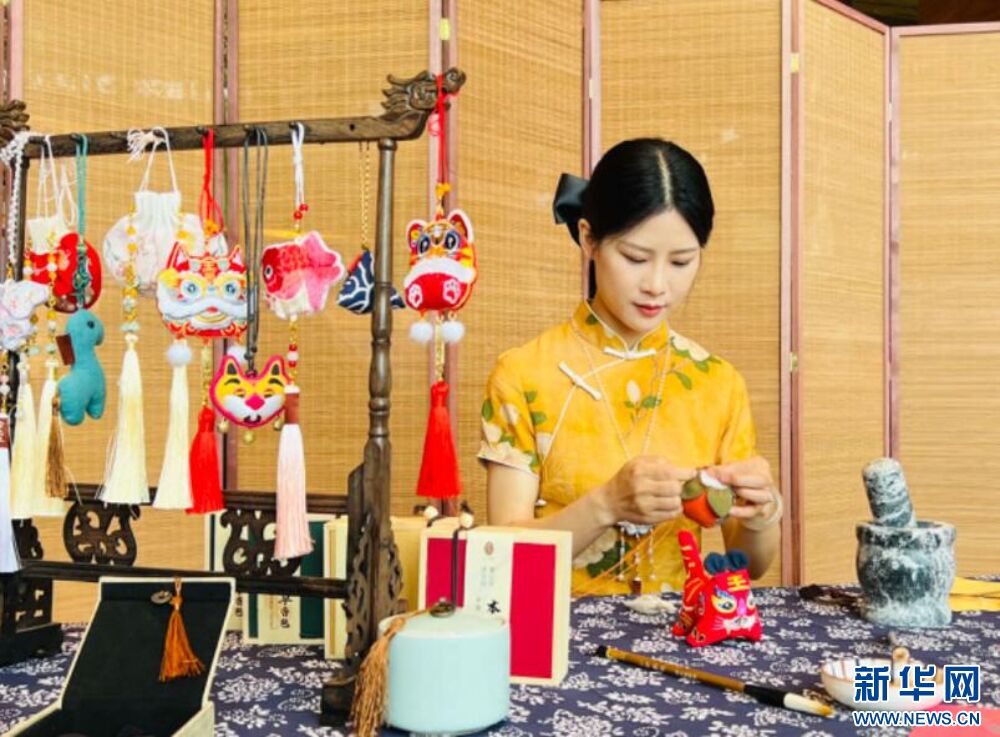 “挂个香囊袋,不怕五虫害”。端午来临,百年老店雷允上的中药香囊成了紧俏品。(摄影 吴颖)