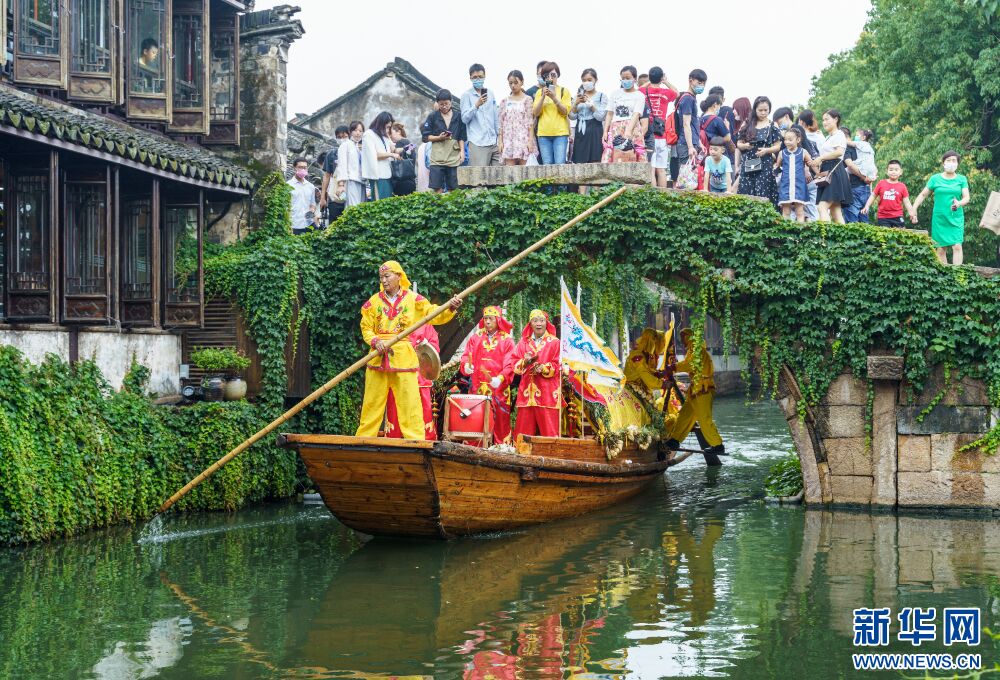 在千年古镇周庄,每到端午佳节都要举行祭祀祈福和水乡游船等活动。古镇因此也显得热闹异常。(摄影 董萍)