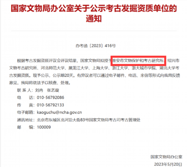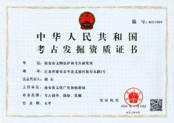 近日,国家文物局授予淮安市文物保护和考古研究所中华人民共和国考古发掘资质。本年度共有8家单位取得资质,淮安市文物保护和考古研究所是今年江苏唯一,也是全国普通地级市中第15家取得资质的单位。