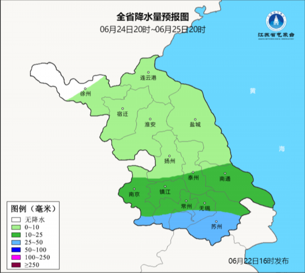 全省阴有阵雨或雷雨,其中沿江和苏南地区雨量中等,局部大雨。最高温度:本省西北部和东南部地区29~30℃,其他地区25~26℃;最低温度:全省21~22℃。全省东北风4级左右。