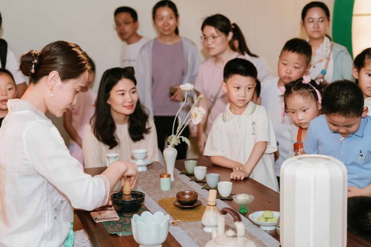 盐城市博物馆推出宋代端午民俗系列活动,让观众真实体验典籍和诗词中描绘的宋代端午。博物馆内不仅设置“纳福签”“点雄黄”“挂香袋”“射五毒”“吊菰黍”等端午民俗体验互动区,还还原了宋代“佩百锁”“悬艾虎”“编香蒲”等端午民俗,复刻《岁时广记》中提到的“道理袋”:装稻于袋,配以李,谐音“道理”,寓意生活顺遂安康,出门只遇讲道理的人。此外,依托“今时明月照梦华--宋人的生活雅趣”特展,打造宋韵文化雅集,插花、点茶、焚香、挂画......带领观众走进宋代文人雅士的精神世界。