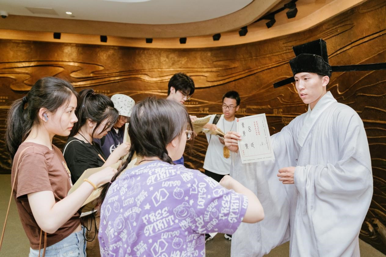 据了解,此次活动以北宋末年的盐引失踪案为故事背景,依托“天下盐城”“水之秀”“今时明月照梦华-宋人的生活雅趣”三大展陈空间,精细化打磨互动剧情,通过1份档案袋、3条故事线、7个文物解密环节、9个NPC、11张线索卡,加深观众的体验感,让其穿越到宋朝,亲身体验案件的侦破过程。通过观察推理、端午问答、民俗游戏、破解谜题等方式,拨开层层迷雾,不仅获得了探秘的成就感,还能在探索中学习盐城的历史文化知识、感受宋代端午的独特魅力。