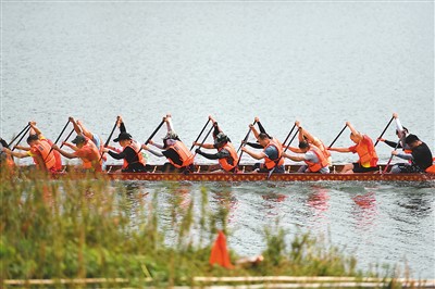 除了吃粽子,划龙舟也是庆祝端午节的方式。