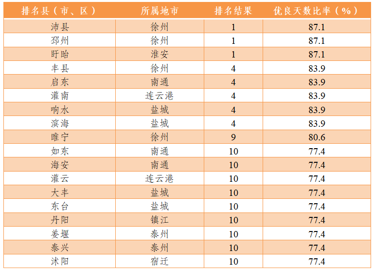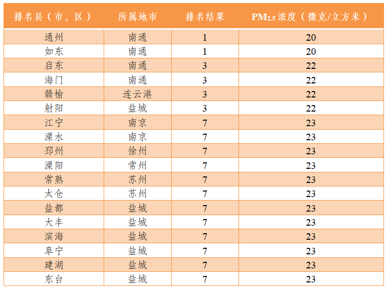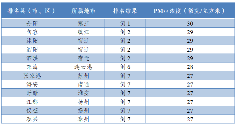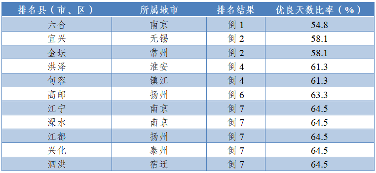 依据《江苏省县(市、区)PM2.5浓度排名规程(暂行)》及《关于公布江苏省县(市、区)省控环境空气质量监测点位的通知》(苏环办﹝2018﹞535号)规定的排名要求,对54个县(市、区)空气质量状况进行排名。
