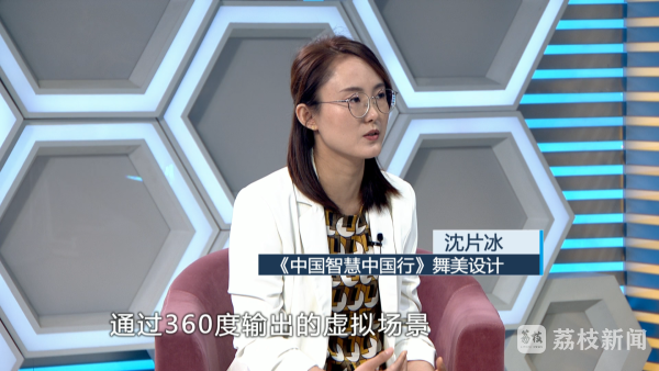 《中国智慧中国行》舞美设计沈片冰表示,通过360度输出的虚拟场景,可以使观众和嘉宾,在节目内容的推进过程当中,自由地去切换情境穿梭。