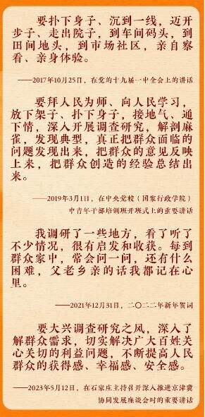 访贫苦,看粮袋摸炕被;进社区,察民情解民忧;入车间,问诉求明方向……每一次赴基层调研,习近平总书记不仅“身入”,更“心到”,以实际行动践行“在人民面前,我们永远是小学生”。