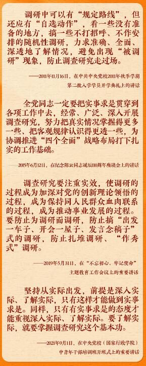 在全党大兴调查研究之风的今天,让我们重温总书记的有关论述,跟着总书记学习调查研究。
