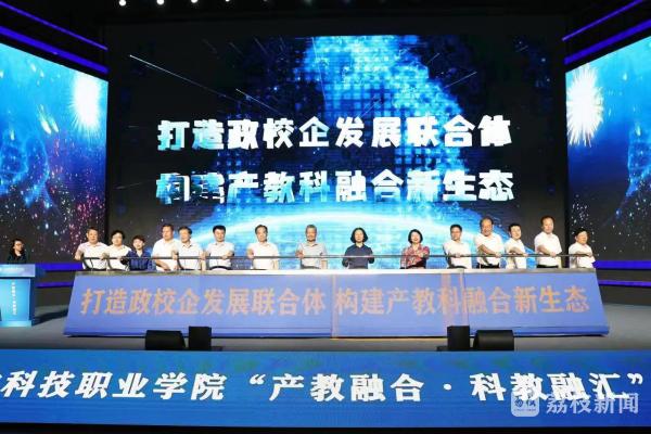 江苏农牧科技职业学院校长朱善元发布学校了“产教融合•科教融汇”行动方案。与会专家、领导共同推杆,校地融合高质量发展正式启动。
