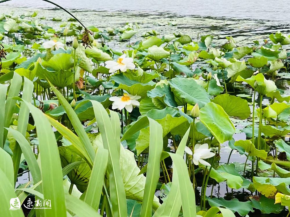 来这里遛弯的市民郭女士说,“欣赏一朵朵亭亭玉立、仪态万千的荷花,能感受到‘接天莲叶无穷碧,映日荷花别样红’的诗画意境。”