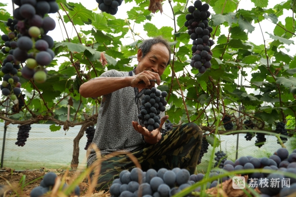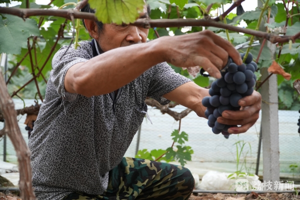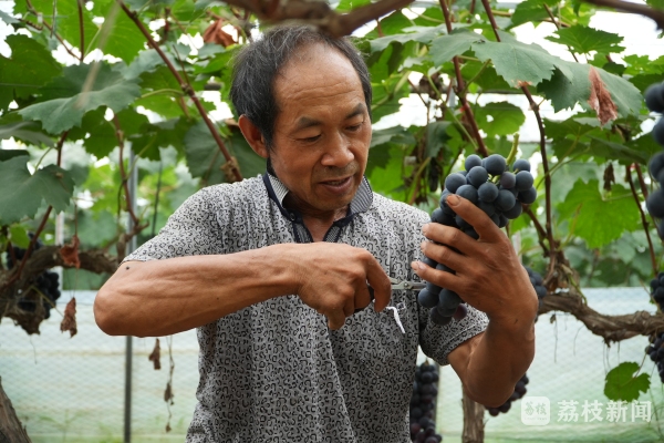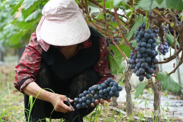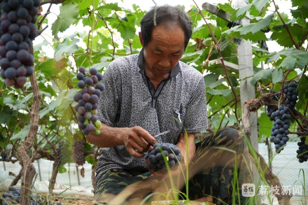 盛夏时节,新鲜时令水果纷纷上市。在江苏宿迁泗洪的葡萄园内,一片繁忙景象。有着“黑珍珠”美誉的夏黑,已经抢“鲜”上市。