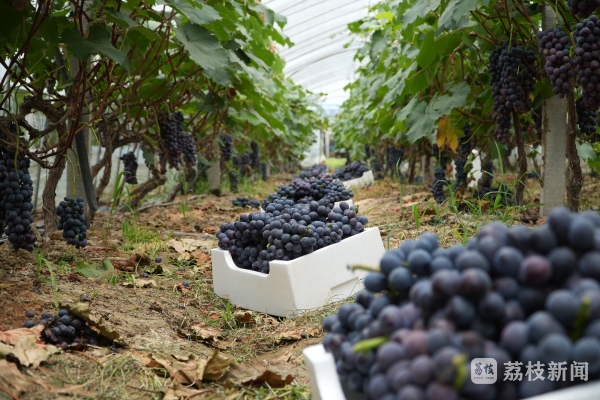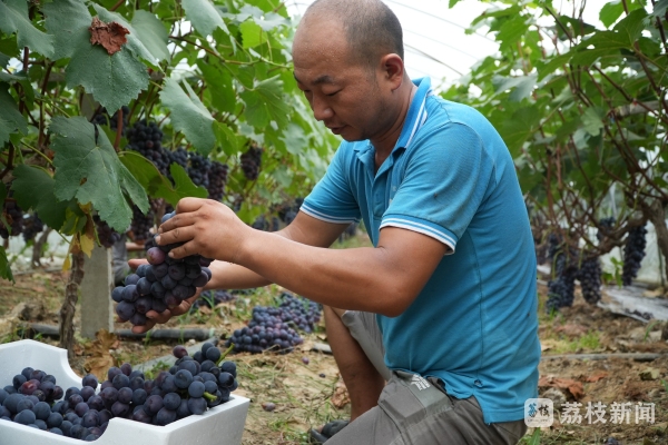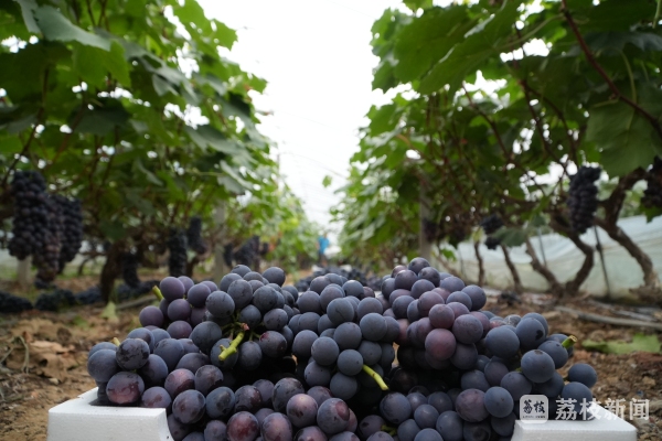 “现在六到七月份主要是夏黑上市,七到八月份,到九月初这样子,我们家主要以阳光玫瑰为主,现在走车都是周边的,比如说南京、盱眙、淮安、徐州这几个地方,过来拉货。” 绿旺葡萄基地负责人陈磊说。