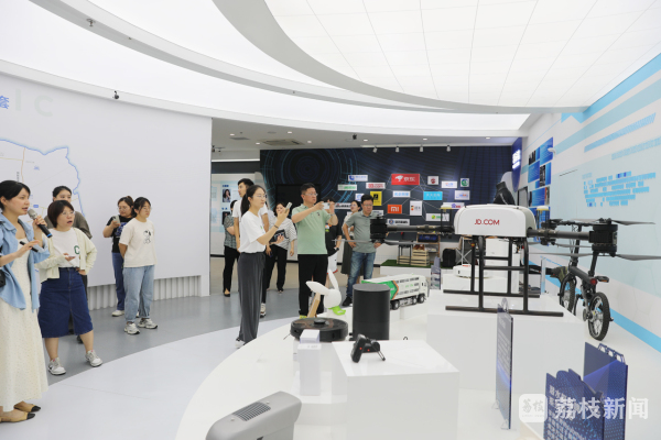 首先,采访团来到宿迁电子商务产业园区展厅,详细了解了宿迁电子商务产业园区的发展历程。采访团对展厅内的特色产品充满着兴趣,尤其是京东无人机和物流智能快递车,聚集了很多闪光灯和目光,智慧物流正逐渐走进大众的生活,让物流运输变得更为便捷。