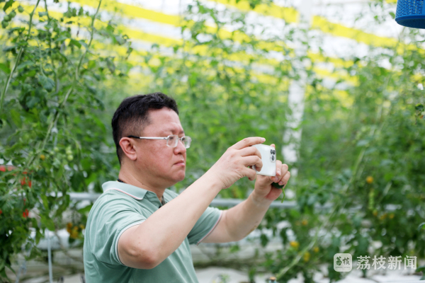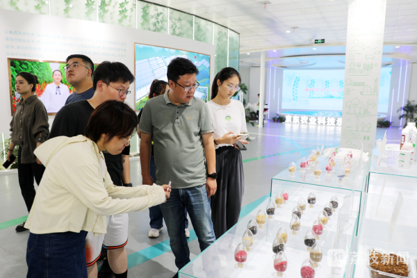 工作人员向采访团介绍,京东农业科技示范园内所有的种植方式都是采用智能化手段进行管控。京东农业科技示范园年产绿色果蔬 5000 余吨、繁育种苗超 500 万株,综合运用全天候气候控制、标准化无土栽培技术,依托京东和绿港智能化、数字化优势,打造“育苗、种植、加工、销售”全流程现代化设施农业精品示范园,带动片区 10 余家合作社、家庭农场发展 3000 余亩设施化果蔬产业发展,引领产业全域振兴。