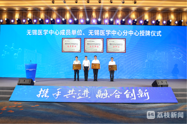7月3日下午,无锡市人民政府举行南京医科大学无锡医学中心揭牌仪式。现场,无锡市政府副市长秦咏薪和南京医科大学胡志斌校长共同为无锡医学中心、附属无锡人民医院揭牌。