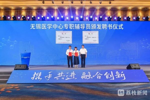 现场举行了无锡医学中心成员单位(附属无锡人民医院、附属无锡疾病预防控制中心)、无锡医学中心分中心(宜兴市人民医院)授牌仪式,并为无锡医学中心专职辅导员张智勇、孙静宁颁发聘书。为落实“人才强院”战略,推动无锡医学中心科研工作高质量开展,现场还举行无锡医学中心高层次人才和科研项目签约。