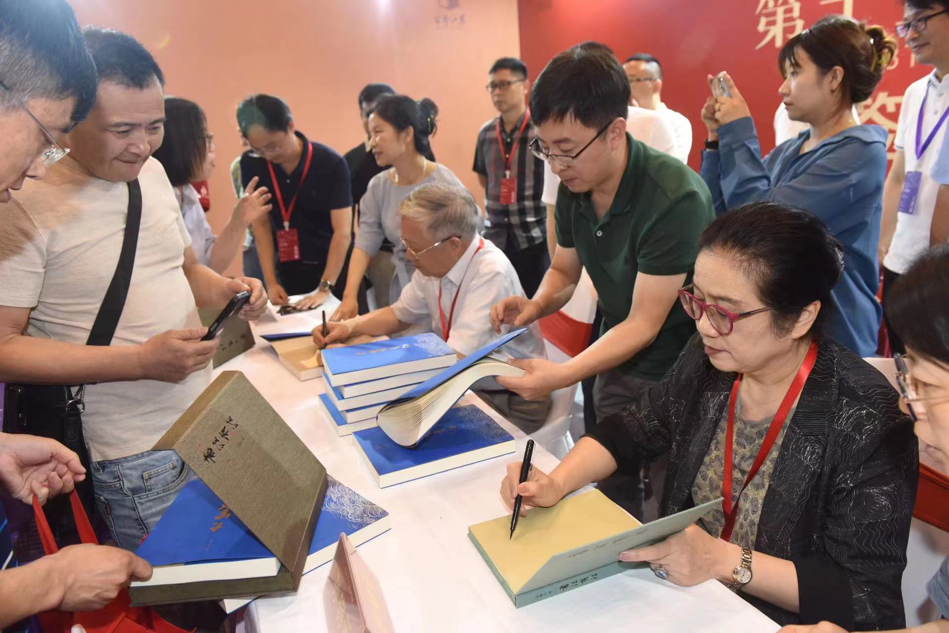 新书首发式后,孙晓云的签售活动被热情的读者围得里三层外三层。作为唯一连续13年参加江苏书展的作者,孙晓云始终致力于传递书写的体会与经验,用书法记言录史、赓续文脉,让读者感受中国汉文字、中国书法的魅力。正如莫砺锋所评价的,“她用有生气的、流动的线条,将这些字一个个地写出来;书法是一种有生命、有意味的线条,它与万里长江滔滔不绝地奔向东海,内在有一种生命的统一性与和谐性”。孙晓云坦言,江苏书展促使她每年奉献自己的新作。在这种动力催使下,她将继续保持充沛的工作热情和对书法的热爱,不断产出优质作品回馈大众。