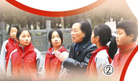 图②:刘老庄八十二烈士的亲属向学生讲述烈士英勇战斗的故事。
