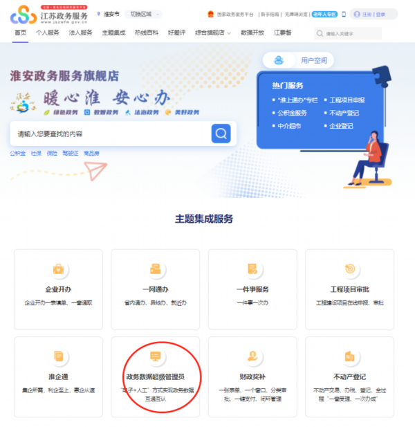 登录江苏政务服务网淮安旗舰店(https://ha.jszwfw.gov.cn)办理