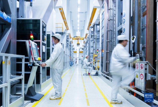 工人在位于苏州市吴江区的亨通集团绿色光纤预制棒智能制造生产车间忙碌(2022年10月摄)。