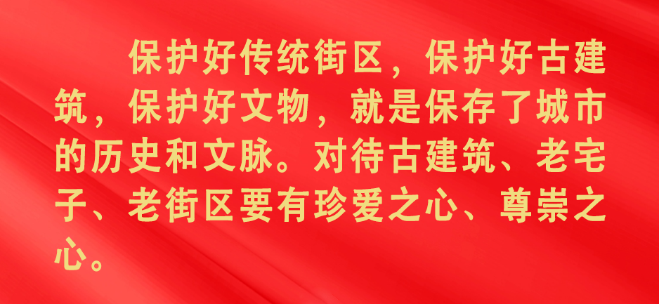 历史文化是城市的灵魂,一个城市的历史遗迹、文化古迹、人文底蕴,是城市生命的一部分。习近平总书记多次考察调研老城建筑和文化街区,对传承保护城市历史文化遗产作出重要指示。