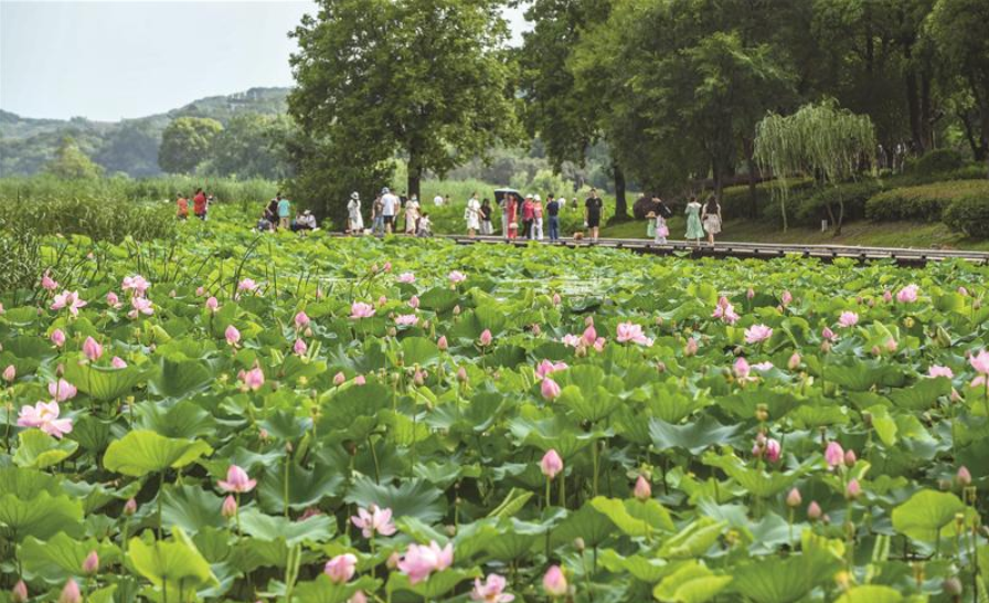 昨天,市民在管社山庄赏荷纳凉。(刘芳辉 摄)