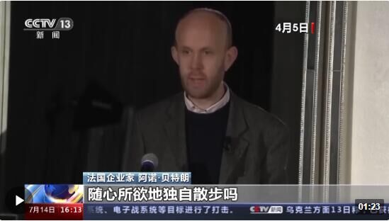 法国企业家 阿诺·贝特朗:在美国,大家敢随时随地、随心所欲地独自散步吗?人们有这种“自由”吗?而这种“自由”在中国是实打实的。我这里有一组惊人的数据,在美国,一个人成为暴力犯罪受害者的概率比在中国高出70倍。这不光是说说,我在中国的7年里,不仅仅我自己从未遭遇过或是亲眼看见过暴力案件,就连我身边的人也从来没有过。中国是一个非常非常安全的国家,这种免于恐惧的自由是实际存在的。