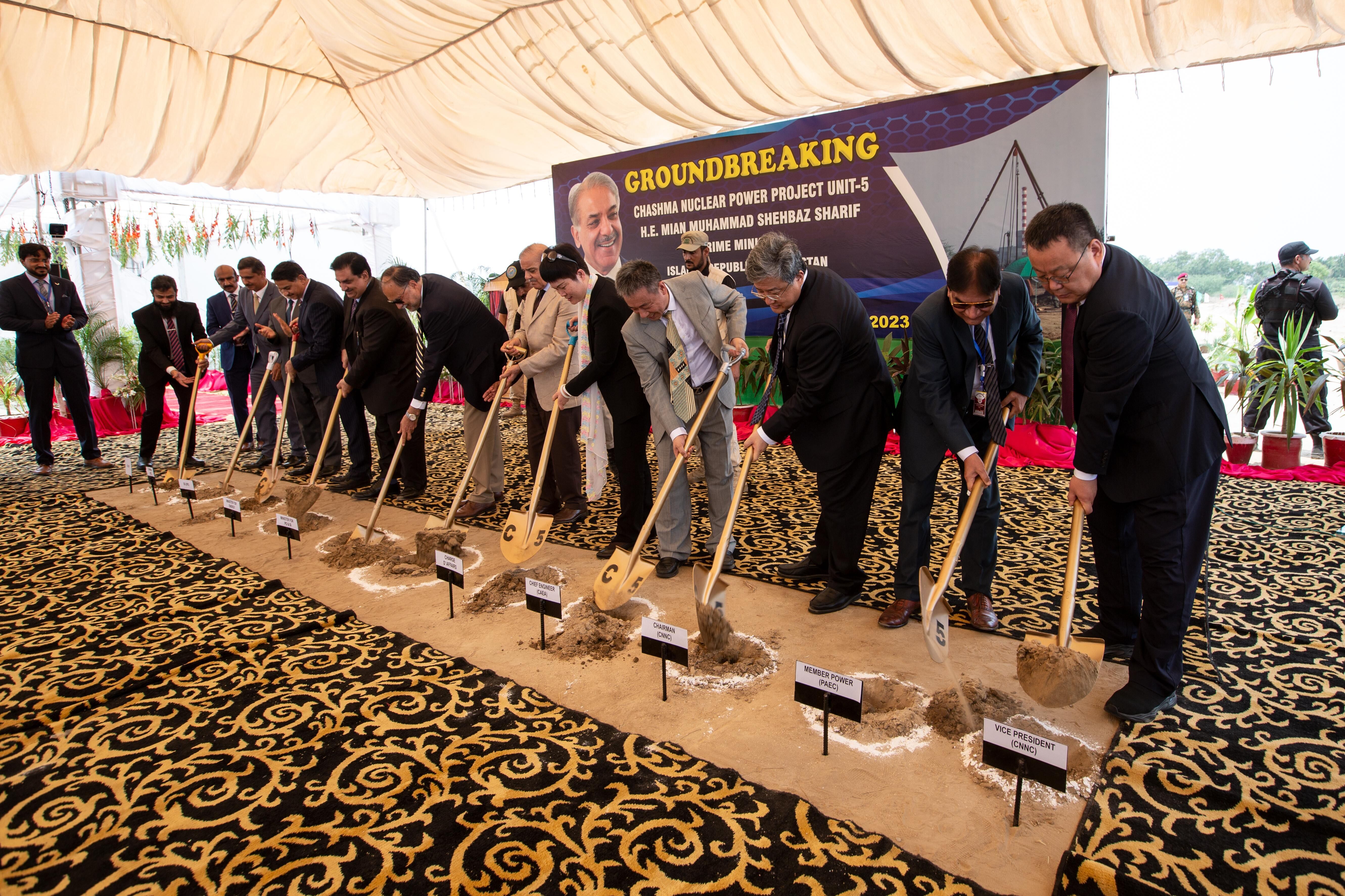 The groundbreaking ceremony for Unit 5 (C-5) of the Chashma Nuclear Power Plant in Pakistan is held on July 14, local time. [Photo provided to China.org.cn]