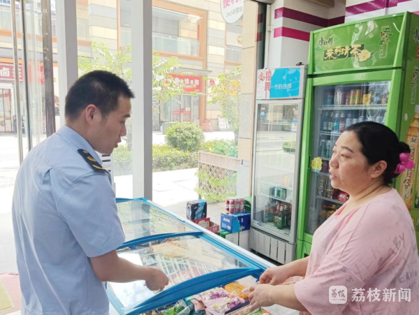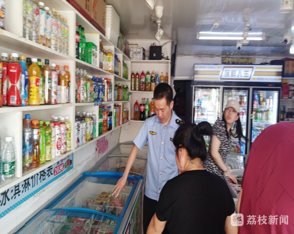 在镇江,扬中市场监管局新坝分局联合机关食品安全监督管理科开展大检查,执法人员分成两个小组,通过网格交叉巡查、随机抽查等方式,深入排查辖区内的食杂店和小餐饮等风险点,对夏季热销的饮料制品、奶制品以及易变质、保质期短和有保存条件的食品进行重点检查。